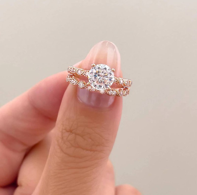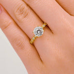 Band: The band is crafted from radiant gold and silver, featuring a row of perfectly set round-cut diamonds along its surface. This pavé-style design adds continuous sparkle and enhances the brilliance of the central gemstone while maintaining a refined and elegant silhouette.